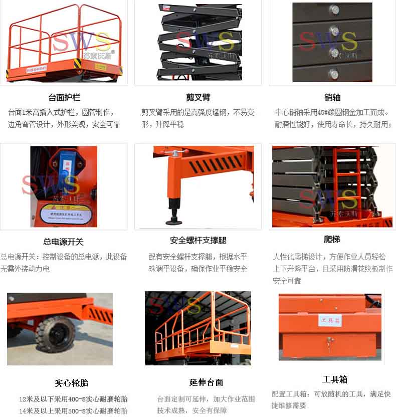 3、剪叉為高強度錳鋼矩形管,強度高、不變形