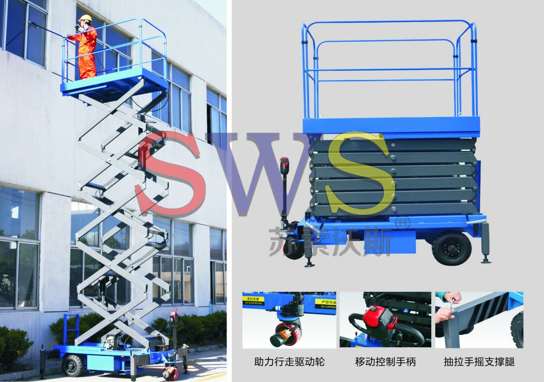 設(shè)備自身具有行走及轉(zhuǎn)向驅(qū)動功能,不需人工牽引,不需外接電源。移動靈活方便,直流電動驅(qū)動輪具有自鎖功能,驅(qū)動輪工作時剎車分離,不工作時自動鎖定。 令高空作業(yè)更方便快捷,是現(xiàn)代企業(yè)高效安全生產(chǎn)之 理想高空作業(yè)設(shè)備。